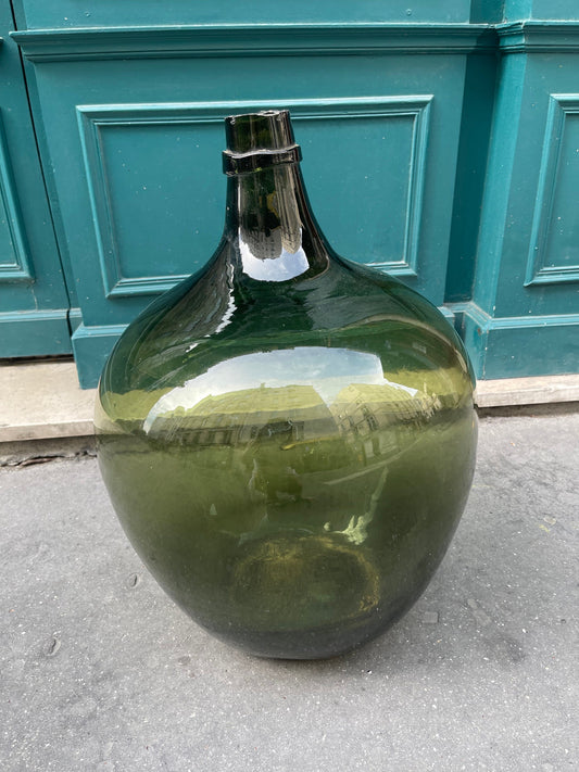 Antique French Green Demijohn Carboy Large Wine Bottle Dame Jeanne transparent 15L 1950s - antique vase collectionRegular price €200,00 EURRegular priceUnit price / per-