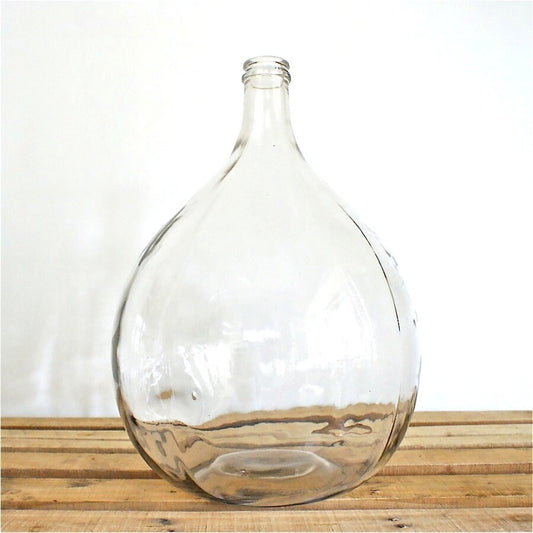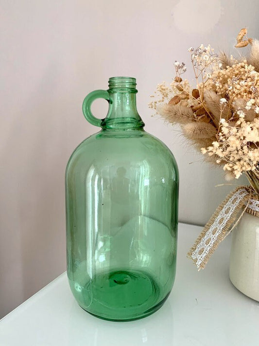 Antique French Green Demijohn Carboy Large Wine Bottle Dame Jeanne transparent 15L 1950s - antique vase collection