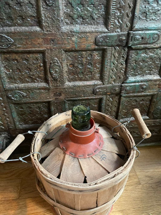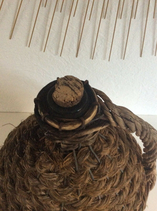 Ancien dame jeanne demijohn 5L dans son osier 1950s