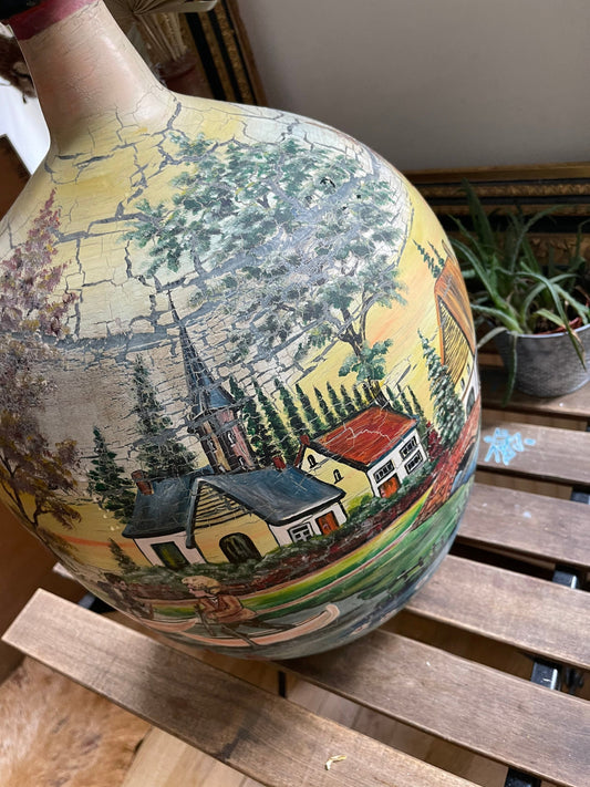 Ancien Dame Jeanne 20L peint à main, dame jeanne antique, vintage vase 1960
