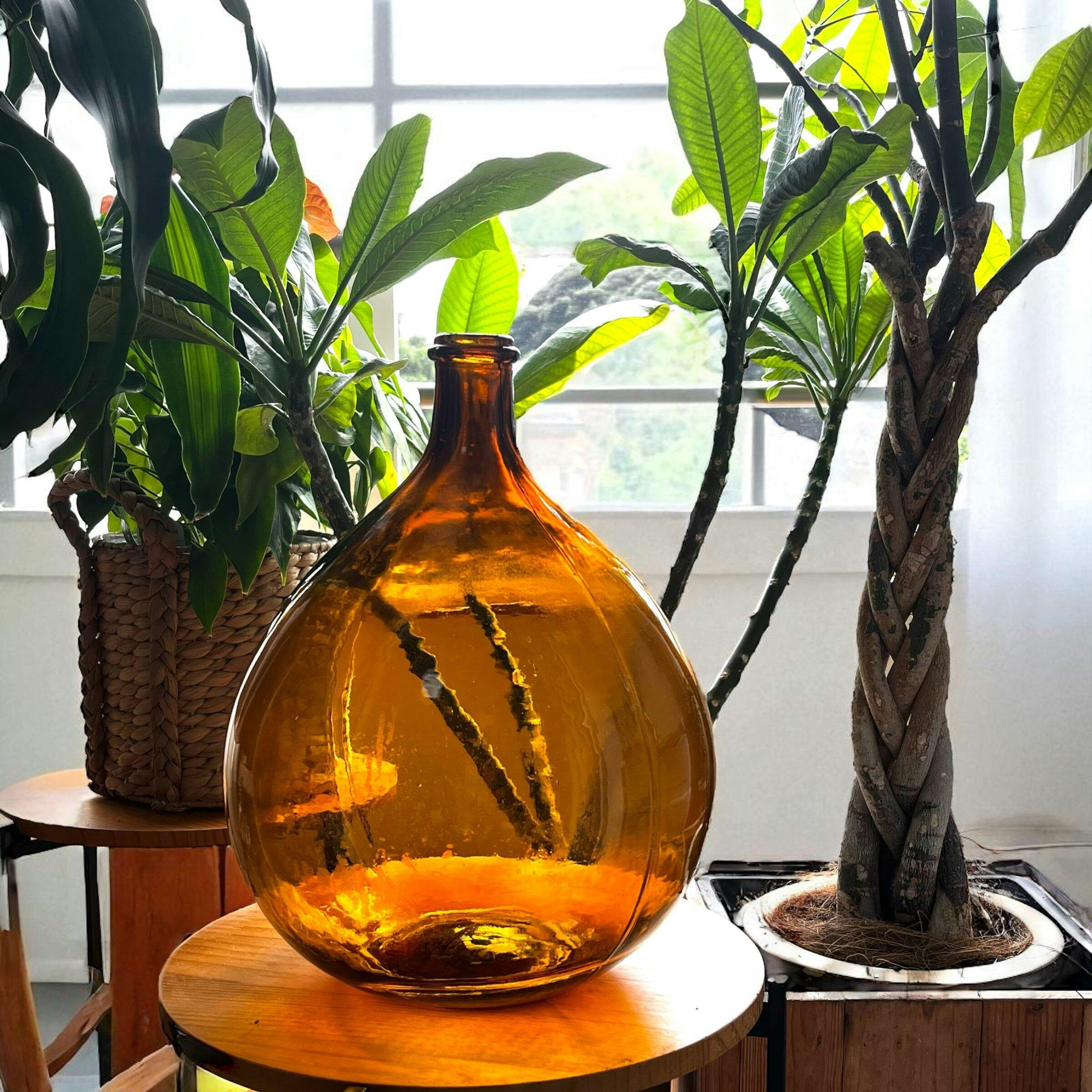 Dame jeanne ambre fonce 10L rare color, shape goute deau, antique vase 1950s