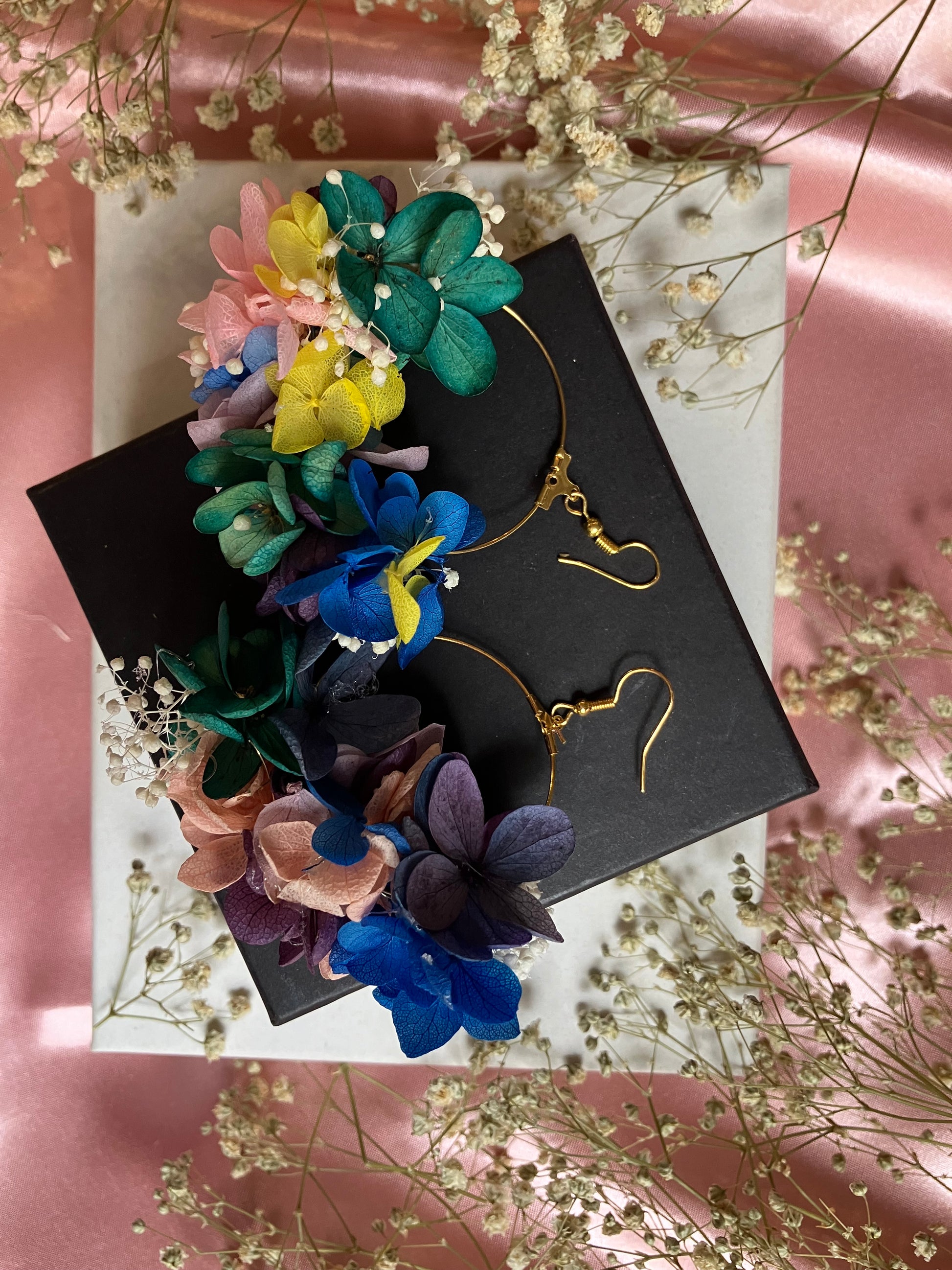 Create unique and delicate earrings with dried flowers and gold metallic wire. This pair of KYLIE earrings will reflect your romantic, bohemian style.