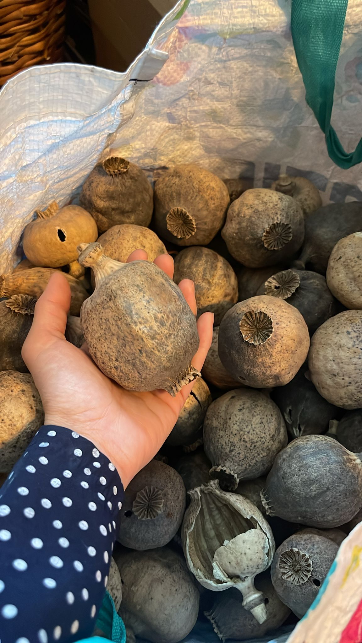 One kilo of cut, untreated and unpainted flower heads of dried poppy.