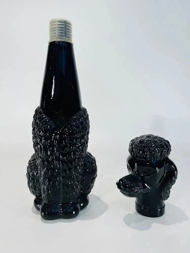 Rare Vintage Bouteille en verre noir français circa 1950 Chien caniche