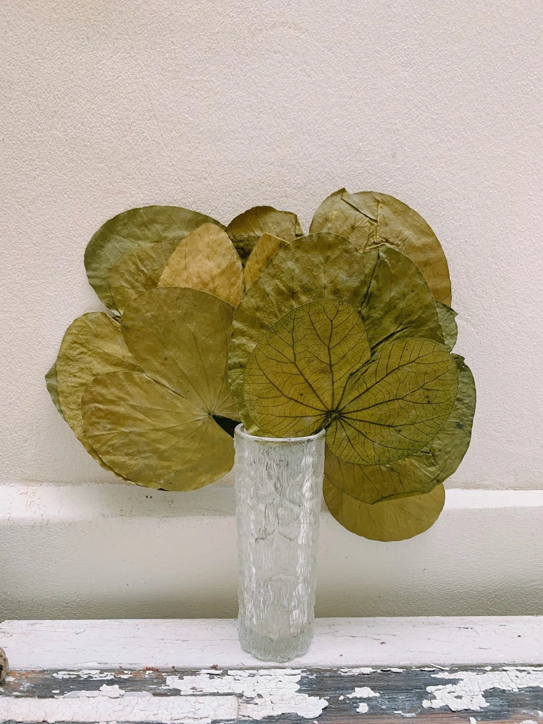 Preserved water lily leave. Each bunch has around 8-9 leaves. Size: Approx H 20-25cm, Large: 14-16cm